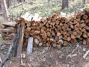 なぜか薪が積んである