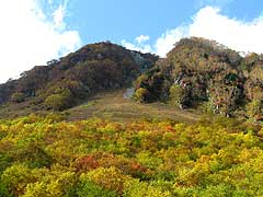 特に紅葉時は横尾からすぐの屏風の頭下部の紅葉風景も素晴らしいものがあります。 |