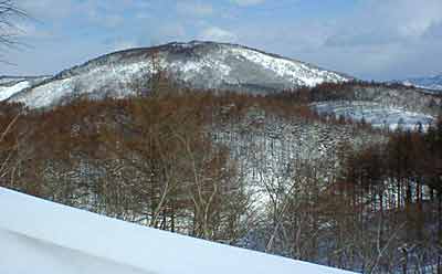 標高1022mの大平峰(毛無山)は斑尾高原の希望湖すぐ脇にある登山口から比較的楽に登れる山として、観光客やハイカーの人達に親しまれております。しかし冬の厳冬期は4mもの雪に覆われ完全な冬山と化します。しかし冬の晴れ間の時や3月から5月の新緑にかけてはスノーシューの絶好のロケーションとなります。美しい北信濃の風景を見る事が出来ます。 |