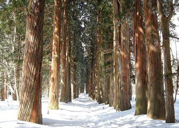 戸隠高原のスノーウォーキングコースは奥社参道入り口附近から入り、奥社参道中間点附近にある随神門へ、そこから左に折れ戸隠森林植物園内に、そこから鏡池へのコースが一般的です。