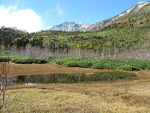 秋には残雪はありませんが、道がぬかっておりますので、注意して行って下さい。 |